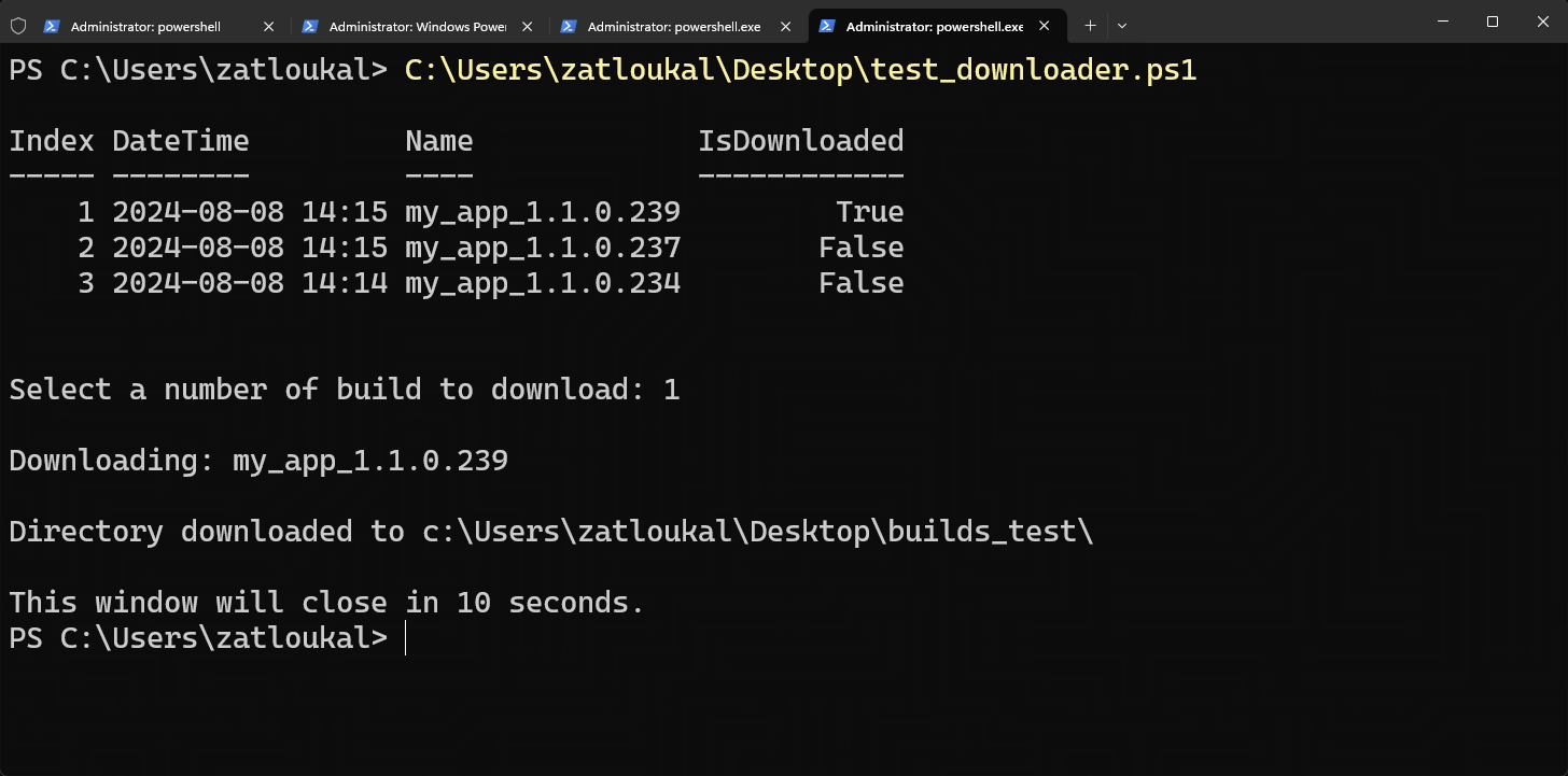 $PROMPT = Read-Host "Select a number of build to download" Celý skript najdete na našem GitHubu: folder_downloader.ps1
