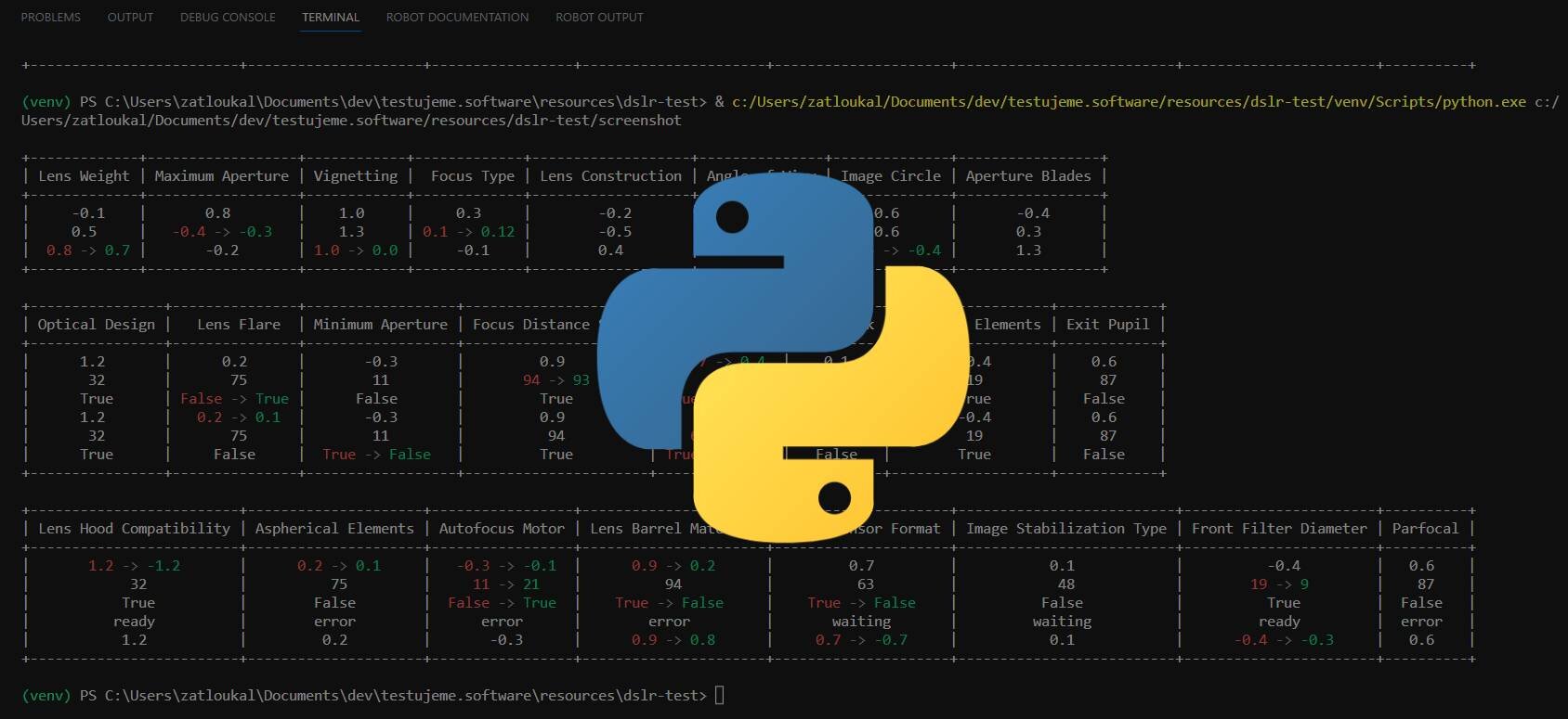 print(Fore.GREEN + 'this is green text')Výsledkem je přehledná tabulka změn: test3.py