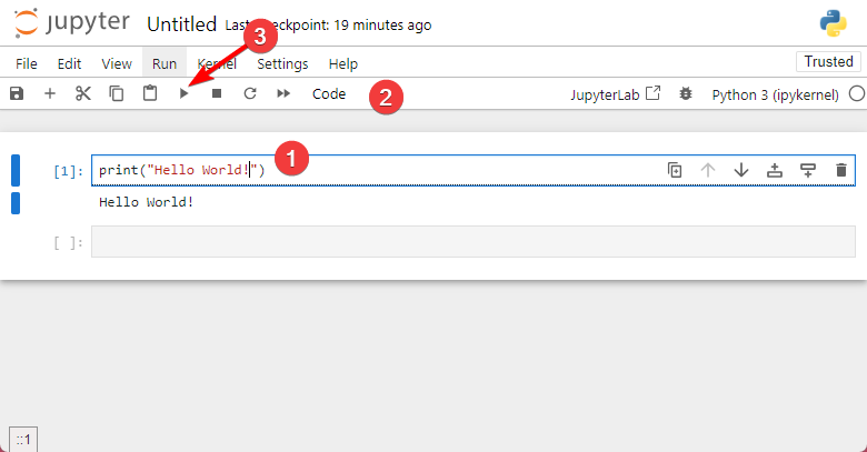 V dokumentu můžeme vytvářet bloky s různou funkcí. Můžeme vyzkoušet přidání spustitelného Python kódu a ověřit, že vše funguje, jak má:
