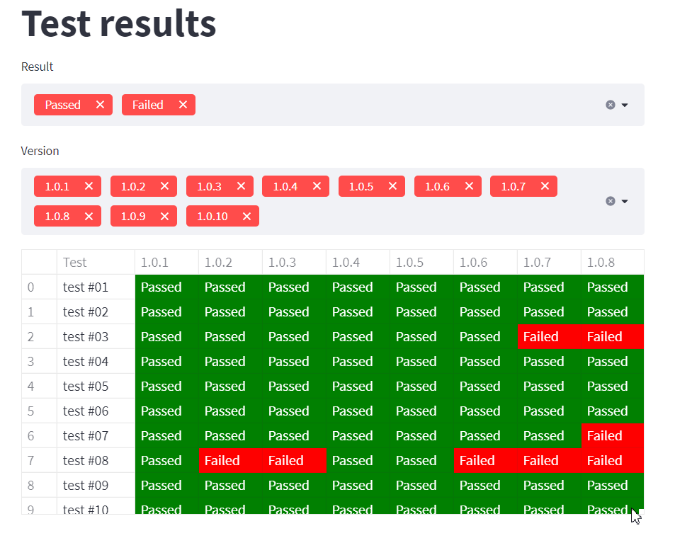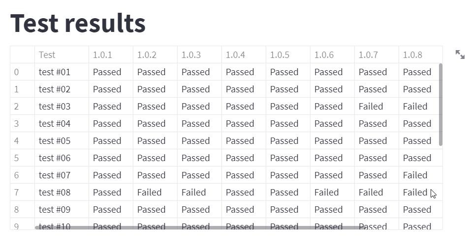 streamlit run .\hello-world.pyPro účely tohoto seriálu jsem vytvořil jednoduchou tabulku s výsledky testů (test-results.csv):