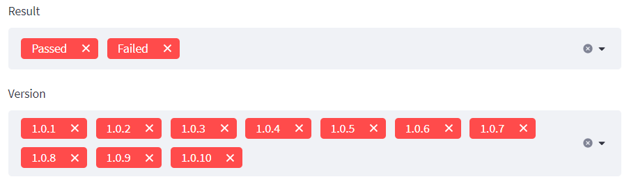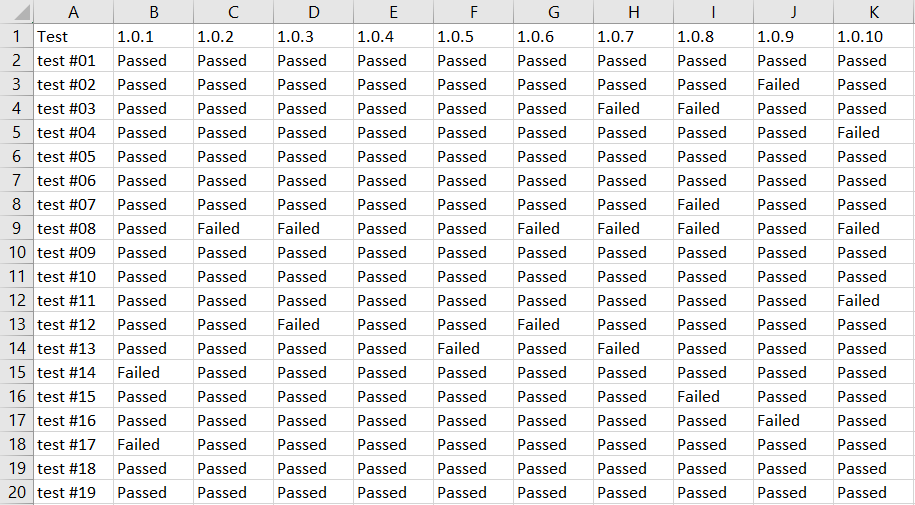 Aby se nám v tabulce stále zobrazoval i první sloupec s názvem testu, explicitně ho přidáme do filtrování verzí:
