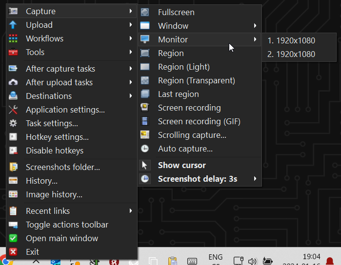 To, na co používám ShareX nejčastěji, jsou klasické snímky obrazovky – screenshoty. Kromě snímání celé obrazovky (včetně všech monitorů, pokud jich máte víc), umí také snímat konkrétní okno nebo vybranou oblast.