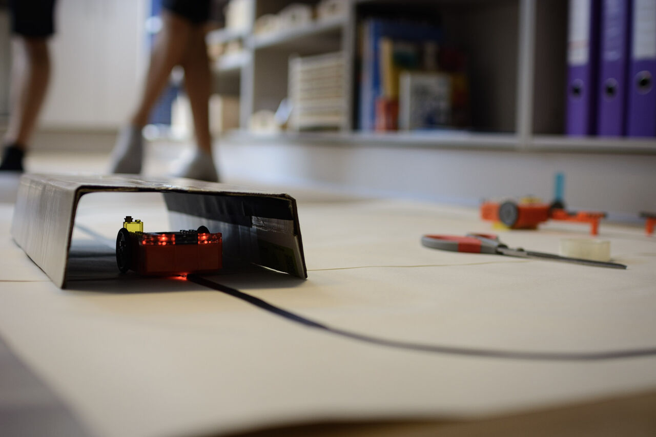 Během odpolední části vás čekají další praktická cvičení, kde začneme s jednoduchými příkazy a postupně přejdeme k pokročilejším technikám, jako jsou podmínky a cykly. Konkrétně se podíváme na senzory a výstupy (motory, zvuky, sledování čáry, detekce překážek, detekce světla, mikrofon), čekání, čekání s podmínkou, cykly, podmínky, komunikace (posílání zpráv mezi roboty), přerušení, proměnné