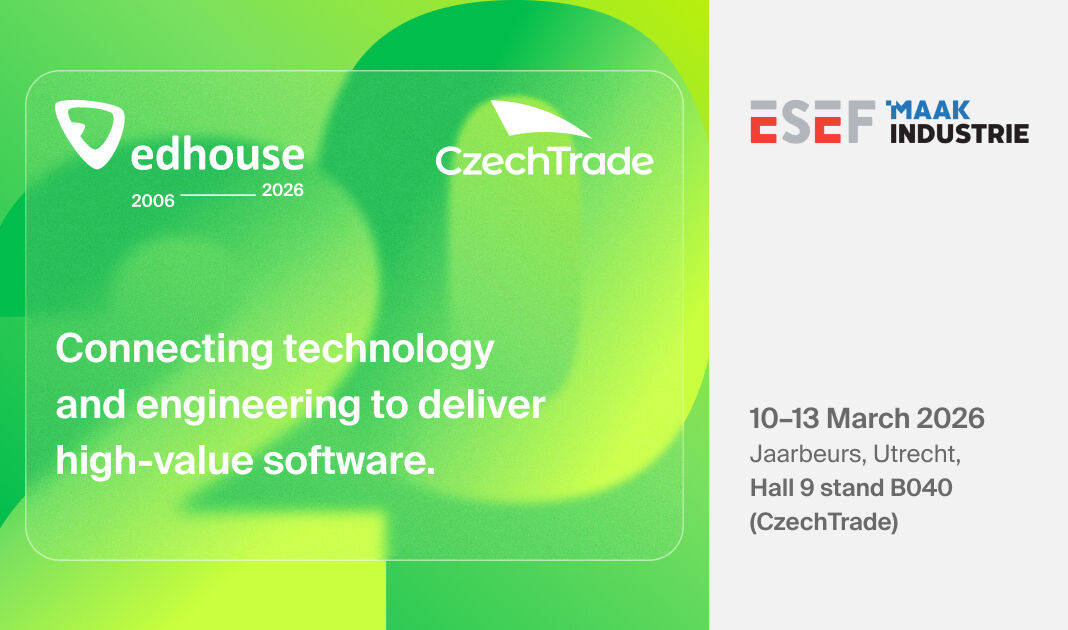 srdečně vás zveme na Evropský strojírenský veletrh ESEF 2026, který se uskuteční v nizozemském Utrechtu. Rádi vám zde představíme, jak pomáháme strojírenským firmám, výrobcům technologií a průmyslovým podnikům proměnit jejich nápady ve spolehlivá a bezpečná softwarová řešení.