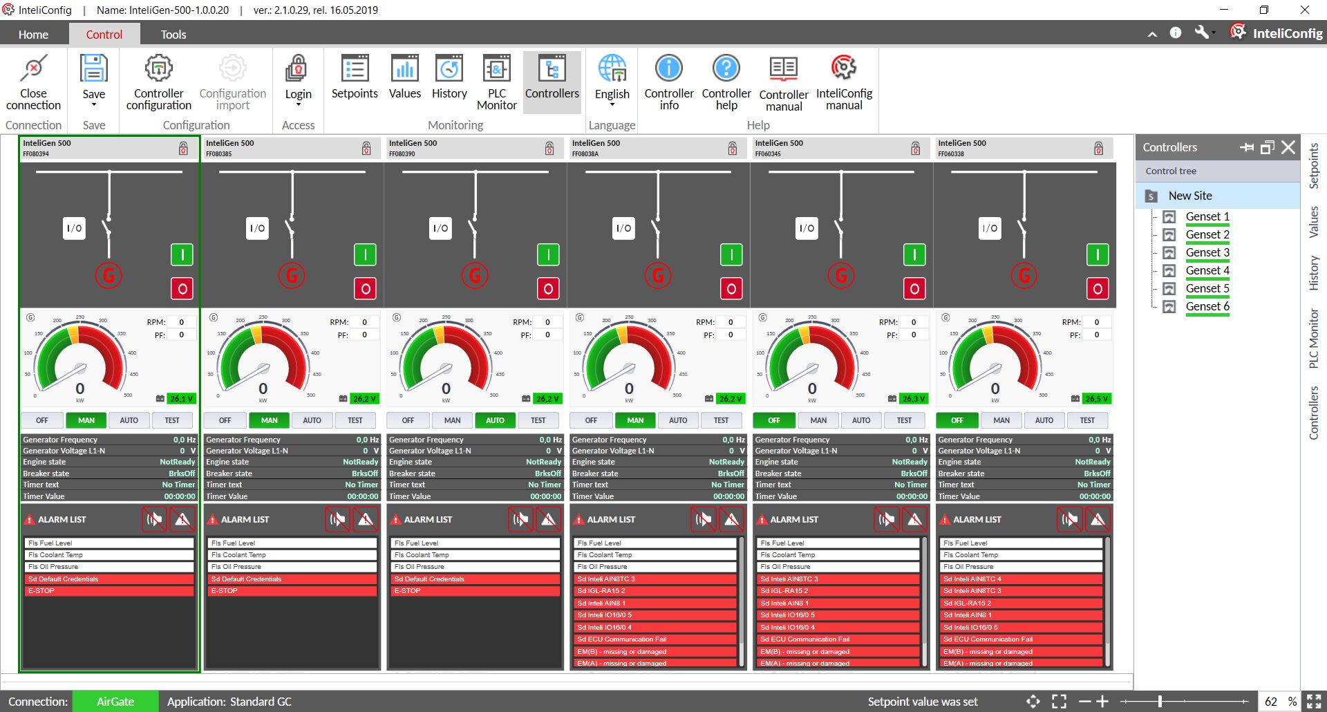 Konfiguraci kontroléru si může uživatel připravit off-line a posléze ji do zařízení nahrát, nebo může konfiguraci měnit přímo na živém kontroléru. Ten připojí k aplikaci buď lokálně za použití sériového portu nebo USB, nebo vzdáleně prostřednictvím komunikačních rozhraní jako je AirGate nebo ethernet.