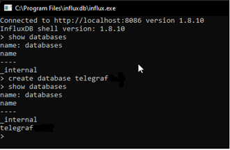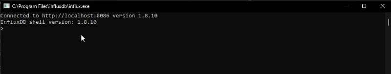 Once we have an influxDB instance running on our computer, we use influx.exe to start a power shell session with an open connection to our InfluxDB instance.