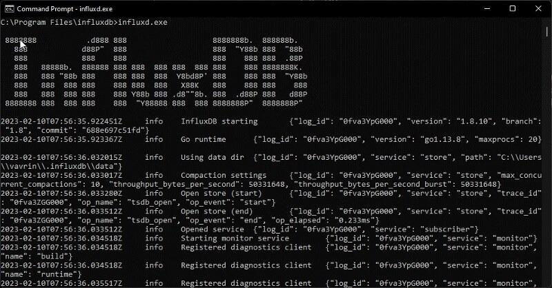In our case, we want to run the influxd file: C:\Program Files\influxdb>influxd.exe