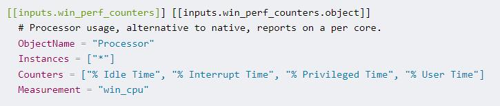 If we want to add a counter for Processor Time, for example, we simply add a “% Processor Time” item to the telegraph configuration among the “Counters“.