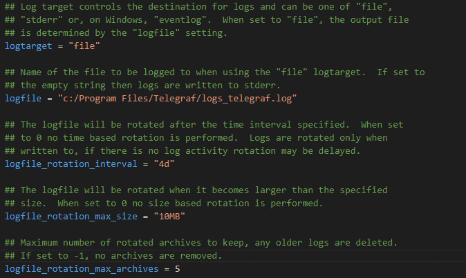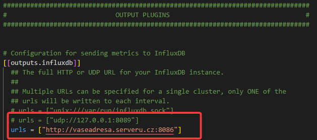 Even this minimally modified configuration is sufficient for our purposes. For further modifications we can use the Telegraf website, where the whole configuration is well documented.