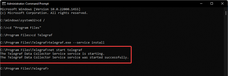 C:/ProgramFiles/Telegraf/telegraf.exe --service install net start telegraf“