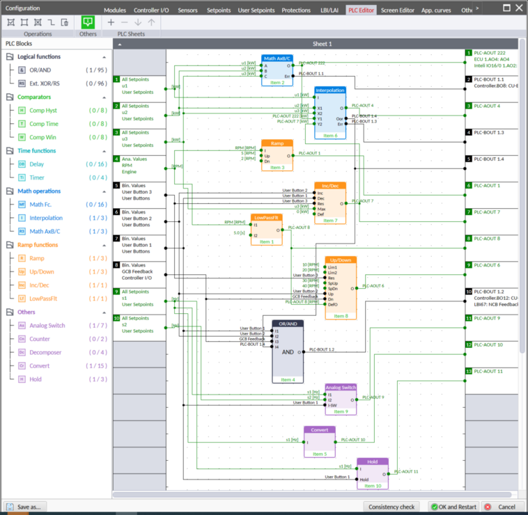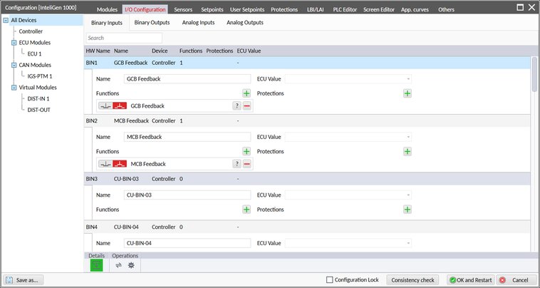 InteliConfig supports not only the configuration of ComAp controllers and modules but also a wide range of engine control units (ECUs) from different suppliers. The built-in PLC editor, advanced user management, multilingual support, docking system, and various additional features open up extensive customization possibilities for both the controllers and the configuration tool itself.